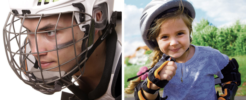 Bei sportlicher Betätigung - arbeitsbedingt oder als Freizeitbeschäftigung - ist eine passende Schutzkleidung ein Muss: Helm , Knieschutz, Ellbogenschutz und Handschuhe gehören mindestens dazu.